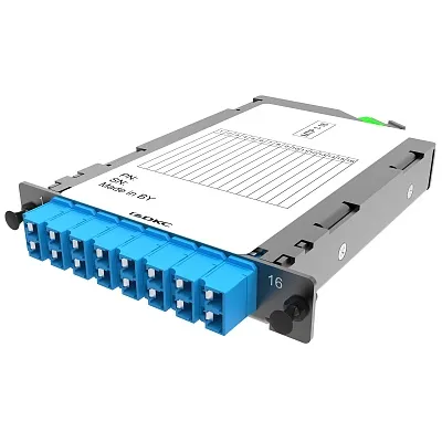 Претерминированная кассета 16 ОВ, OM4, 1xMTP(16)f 8º APС/8xLC Duplex, (синтегрированными шторками), 1/2HU