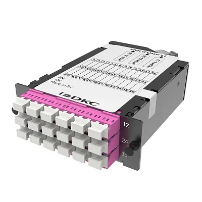 Претерминированная кассета 24ОВ 50/125 OM4, 2xMTP(12)f/12xLC Duplex, 1 HU